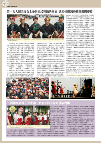 第一夫人周美青女士參與原民舞蹈共祈福 為2009關渡藝術節揭開序幕、「藝起來開幕」女生第一宿舍&藝大會館落成啟用