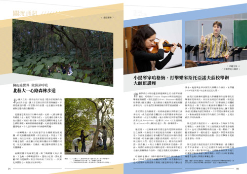 擁抱綠世界 做個深呼吸 北藝大一心路森林步道、音樂學院大師班 小提琴家哈格納、打擊樂家斯托亞諾夫蒞校舉辦 大師班講座
